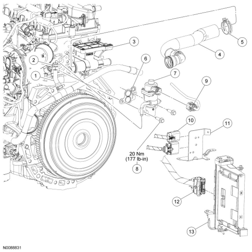 9. NOTICE: Do not use metal scrapers, wire brushes, power abrasive discs or other abrasive means to clean the sealing surfaces. These tools cause scratches and gouges that make leak paths. Use a plastic scraping tool to remove all traces of the exhaust gas recirculation (EGR) valve gasket.