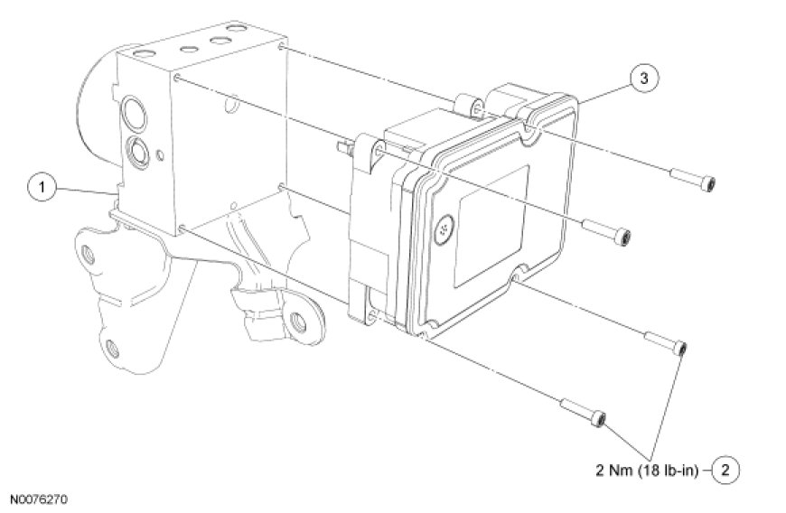 2. Remove the 4 ABS module-to-HCU screws and the ABS module.