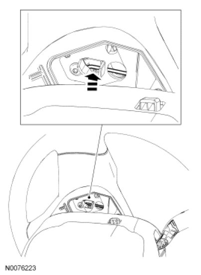 2. NOTE: Use a mirror to view the rear of the steering wheel to locate the 3 driver air bag module attachment pin cavities.