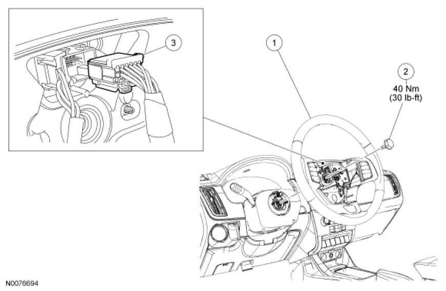 1. Remove the driver air bag module. For additional information, refer to Air Bag Systems.