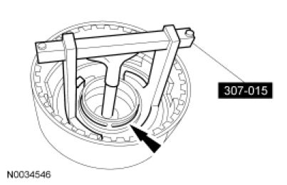 4. Using the Clutch Spring Compressor, install the reverse clutch piston return spring retainer and retainer ring.