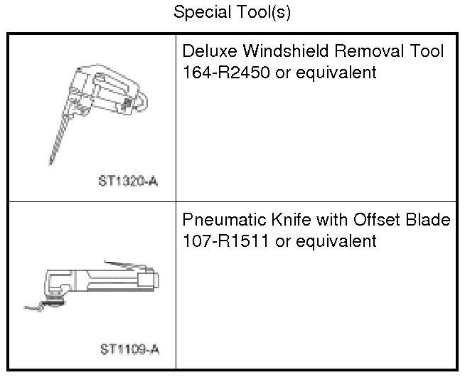 NOTICE: To avoid rust formation, use extreme care not to scratch the paint or primer, or otherwise damage the pinch weld during glass removal.