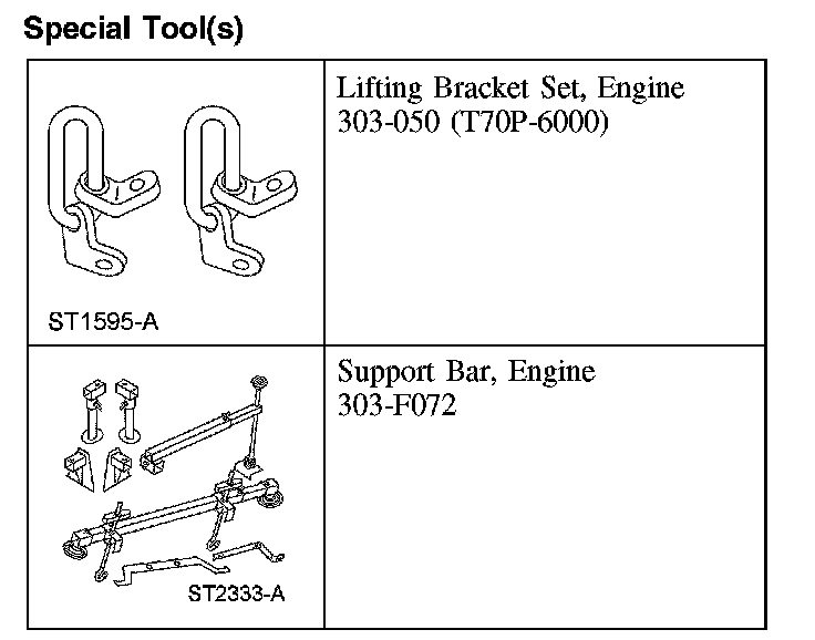 7. Using the Engine Support Bar and the Engine Lifting Bracket Set, raise and support the engine.