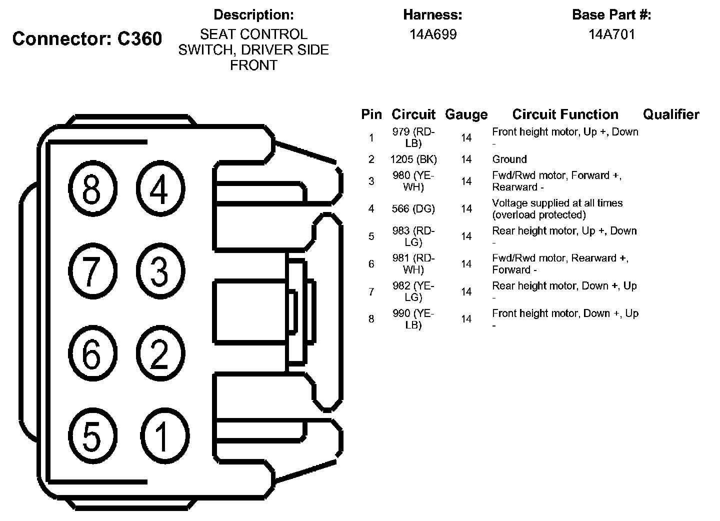 Seat Control Switch, Driver Side Front