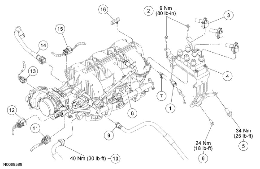 - Tighten in the sequence shown to 10 Nm (89 lb-in).
