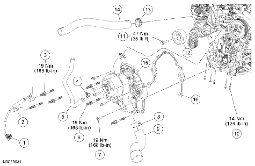 - Tighten to 14 Nm (124 lb-in).
