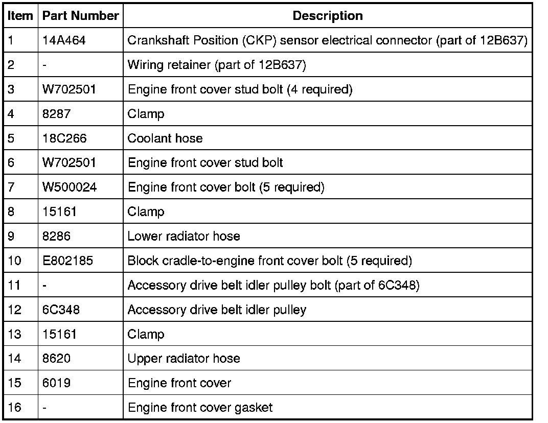 2. Remove the crankshaft front oil seal. For additional information, refer to Crankshaft Front Seal Service and Repair.