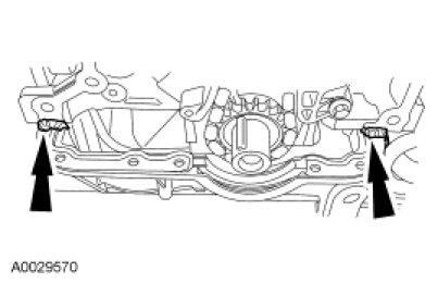 11. NOTE: Make sure that any coolant that drains into the front corners of the engine block cradle is removed.