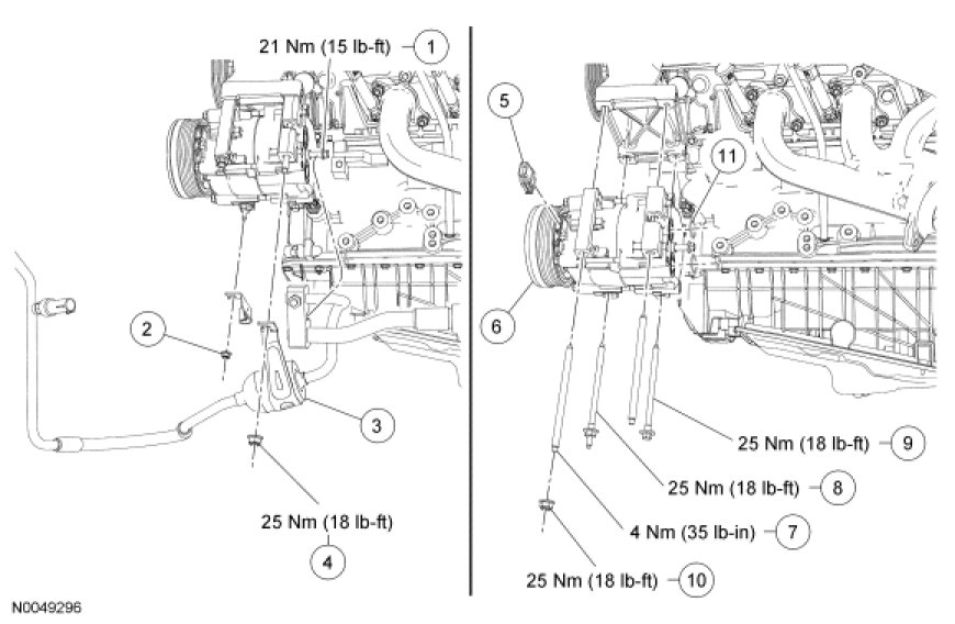 NOTE: A new A/C compressor may come equipped with an A/C clutch disc and hub, A/C compressor pulley and A/C clutch field coil already installed. If these components are not pre-installed, it will be necessary to transfer these parts from the old A/C compressor to the new compressor prior to installation of the A/C compressor if suitable for reuse.