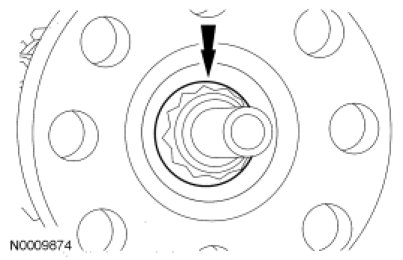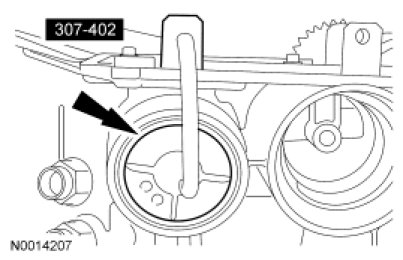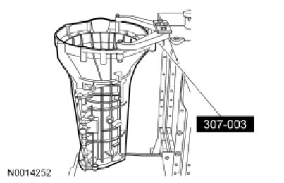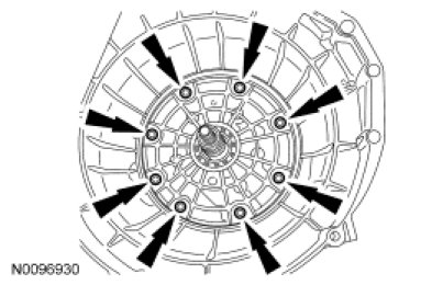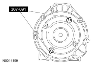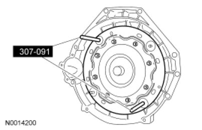 2. WARNING: Secure the torque converter in the transmission during removal or installation. The torque converter is heavy and may result in injury if it falls out of the transmission. Failure to follow this instruction may result in serious personal injury.