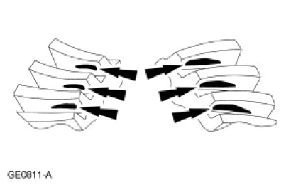 3. Certain types of gear tooth contact patterns on the ring gear indicate incorrect adjustment. Incorrect adjustment can be corrected by readjusting the ring gear or the pinion.