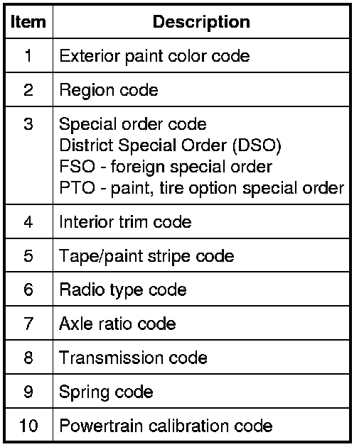 Powertrain calibration information is printed in the lower right corner of the VC label. Only the base calibration information is printed. Revision levels will not appear, however, this information can be obtained through a scan tool using the most current software revision.