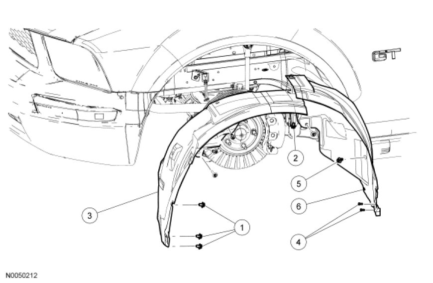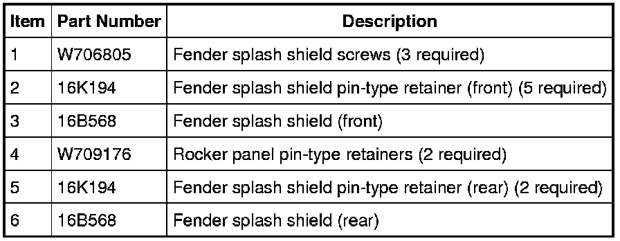 4. Remove the 2 pin-type retainers and the rear fender splash shield.