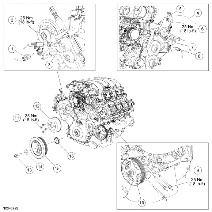 3. Tighten the engine front cover fasteners in the sequence shown to 25 Nm (18 lb-ft).