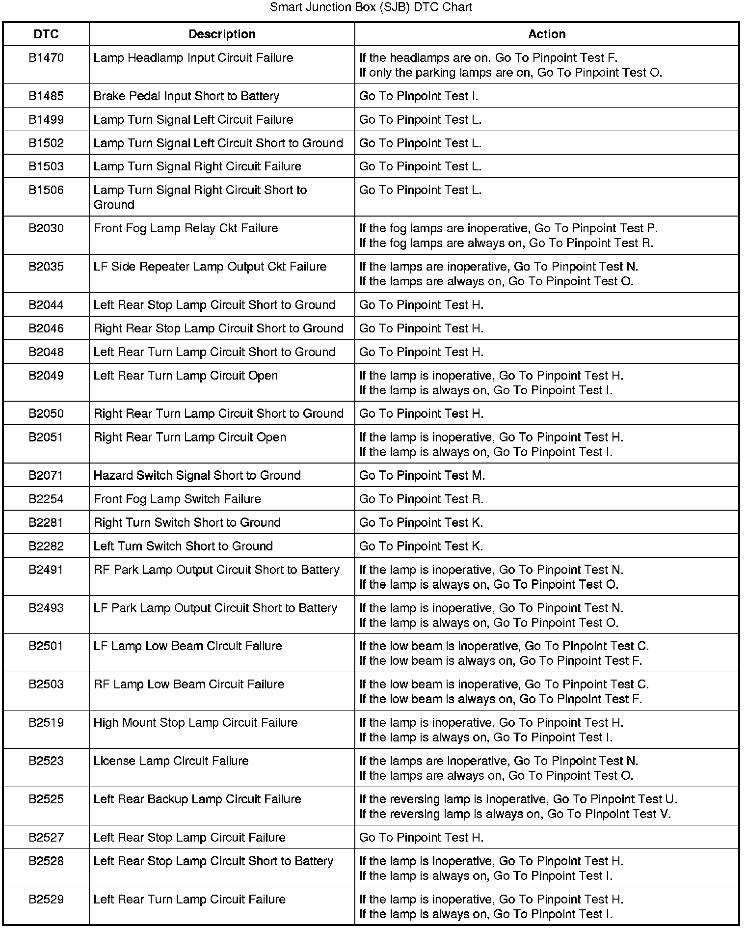 Diagnostic Trouble Code (DTC) Chart