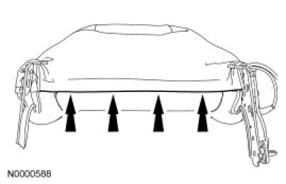 7. NOTICE: Use care when separating the seat cushion trim cover from the hook-and-loop strips. The hook-and-loop strips may be torn from the seat cushion foam.