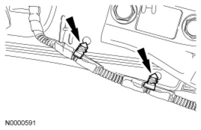 9. NOTICE: Note the position of the wiring harness, to aid installation. An incorrectly routed wiring harness may become damaged when the seat is moved.
