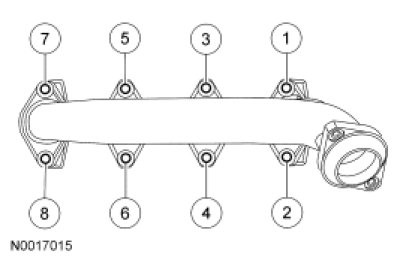 Position a new gasket, the RH exhaust manifold and tighten the 8 new nuts in the sequence shown.