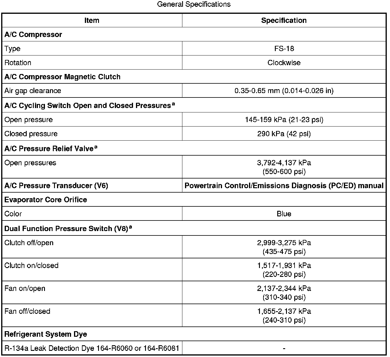 a Manifold gauge set pressures may vary slightly depending on the distance between the service gauge port valve and the A/C pressure relief valve, the A/C cycling switch, the A/C pressure transducer (V6) and the dual function pressure switch (V8) location.