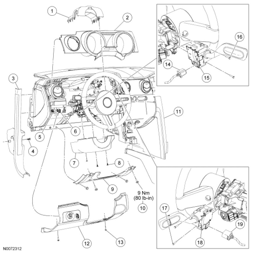 6. Remove the 4 bolts and the steering column opening cover reinforcement.