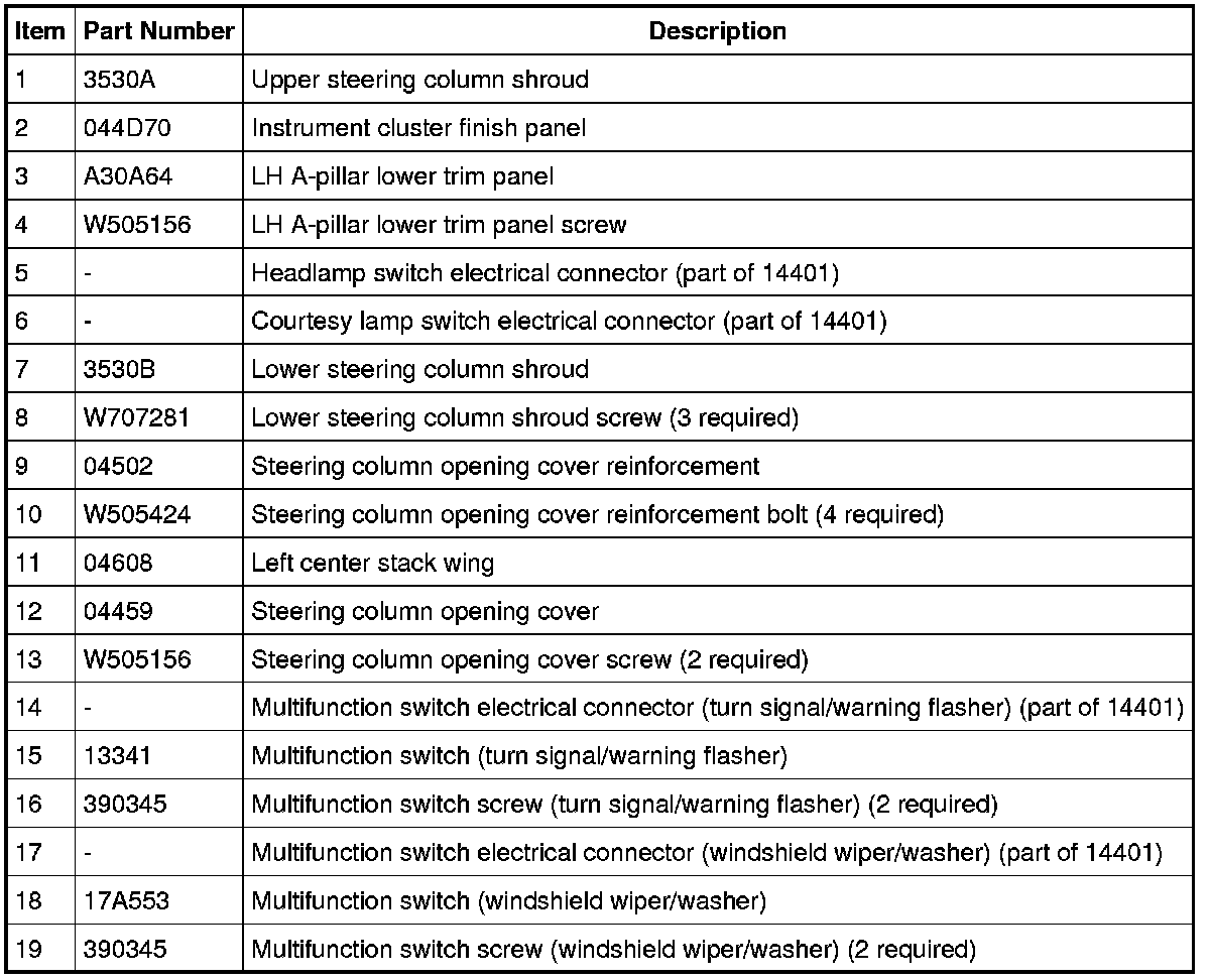 12. Remove the 2 screws and the windshield wiper/washer switch.