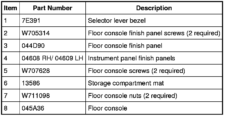 NOTE: Floor console with automatic transmission shown, floor console with manual transmission similar.