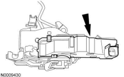 1. Remove the door latch. For additional information, refer to Door Latch Door Latch.