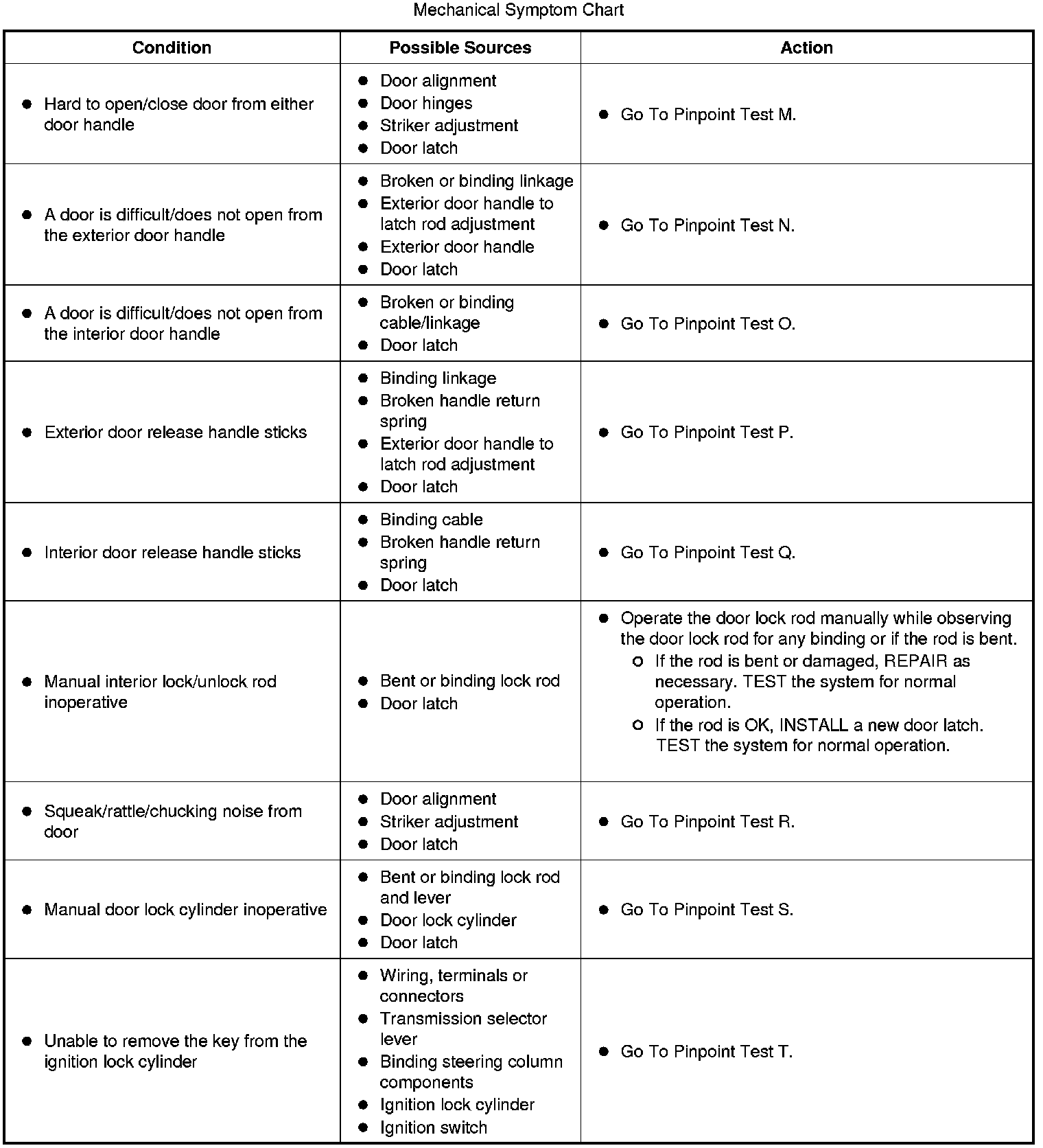 Mechanical Symptom Chart: