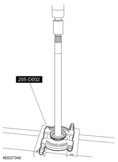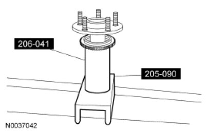 2. Using the Axle Bearing/Seal Plate and the Wheel Speed Sensor Ring Installer, press the rear anti-lock brake sensor on the rear axle shaft to specification.