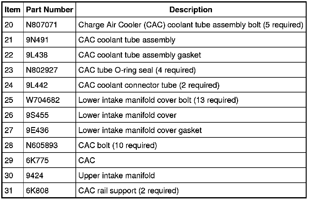 12. Remove the 5 bolts and the Charge Air Cooler (CAC) tube assembly.