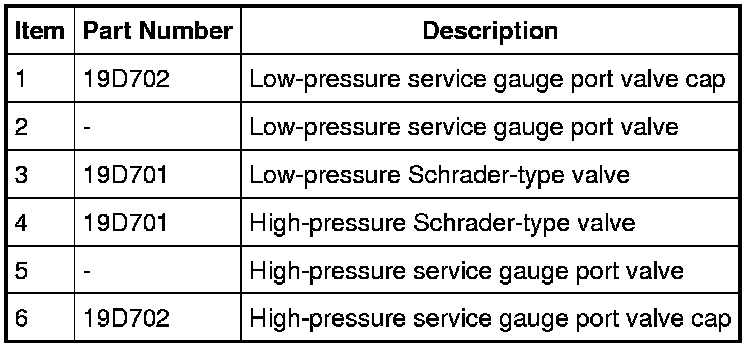 An A/C compressor pressure relief valve is incorporated in the compressor manifold and tube assembly (4.0L) or the A/C compressor (4.6L or 5.4L) to prevent damage to the A/C compressor and other system components, and to avoid total refrigerant loss by relieving unusually high refrigerant system discharge pressure buildups.