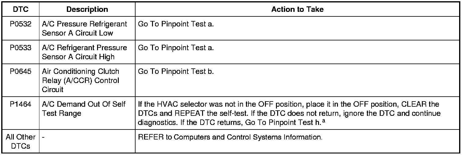 a PCM DTC P1464 will set if the function selector is in PANEL with A/C button pressed, DEFROST or MAX A/C mode when the on-demand self-test is being run.