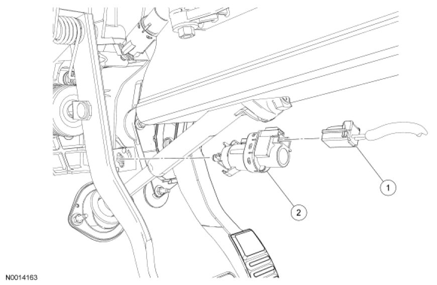 NOTICE: Do not press, pull or otherwise move the brake pedal while removing or installing the stoplamp switch. The switch must be installed with the booster push rod attached to the brake pedal and with the brake pedal in the at-rest position. Installing the switch with the brake pedal in any other position results in incorrect adjustment and damage to the switch.