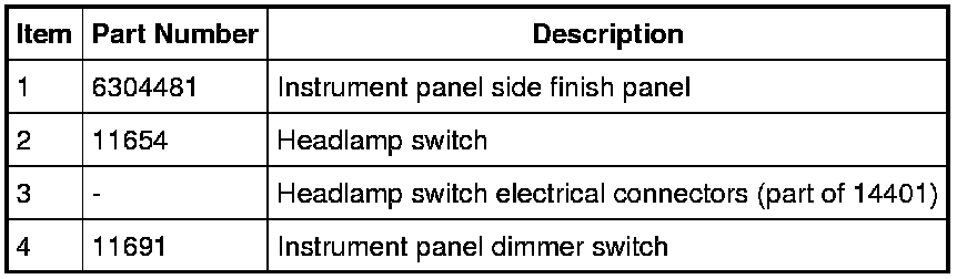 2. NOTE: The headlamp switch is removed by pushing from behind.