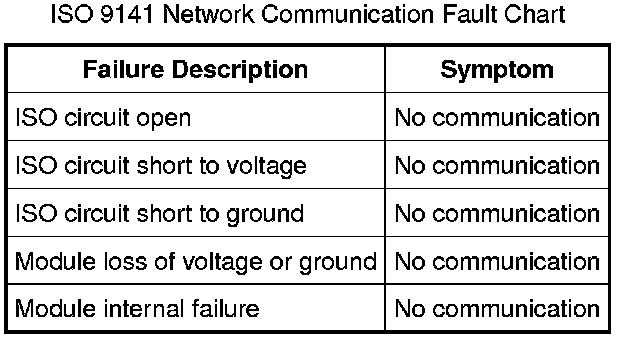 The following fault chart describes the specific ISO 9141 network failures and their resulting symptom: