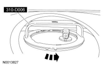 5. NOTE: This step will remove approximately one-eighth tank of fuel from a completely full fuel tank and the majority of any residual fuel from the fuel tank filler pipe. Also the fuel in the fuel tank will be below the Fuel Pump (FP) module mounting flange for FP module removal without fuel spillage.