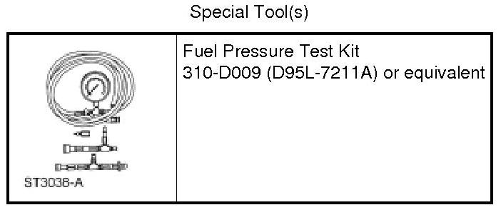 Test the fuel system pressure to make sure it is within the specified range. For additional information, refer to Specifications.