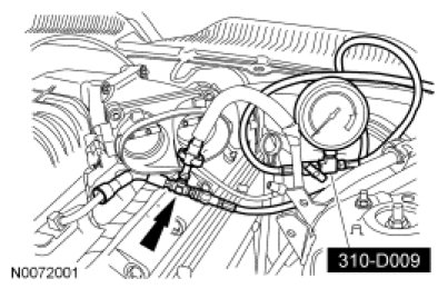9. NOTE: Use a commercially available fuel test adapter (such as OTC(R) 18527).
