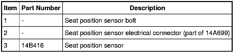 4. WARNING: Always tighten the seat position sensor retaining bolt to specified torque. Failure to do so may result in incorrect restraint system operation, which increases the risk of personal injury or death in a crash.