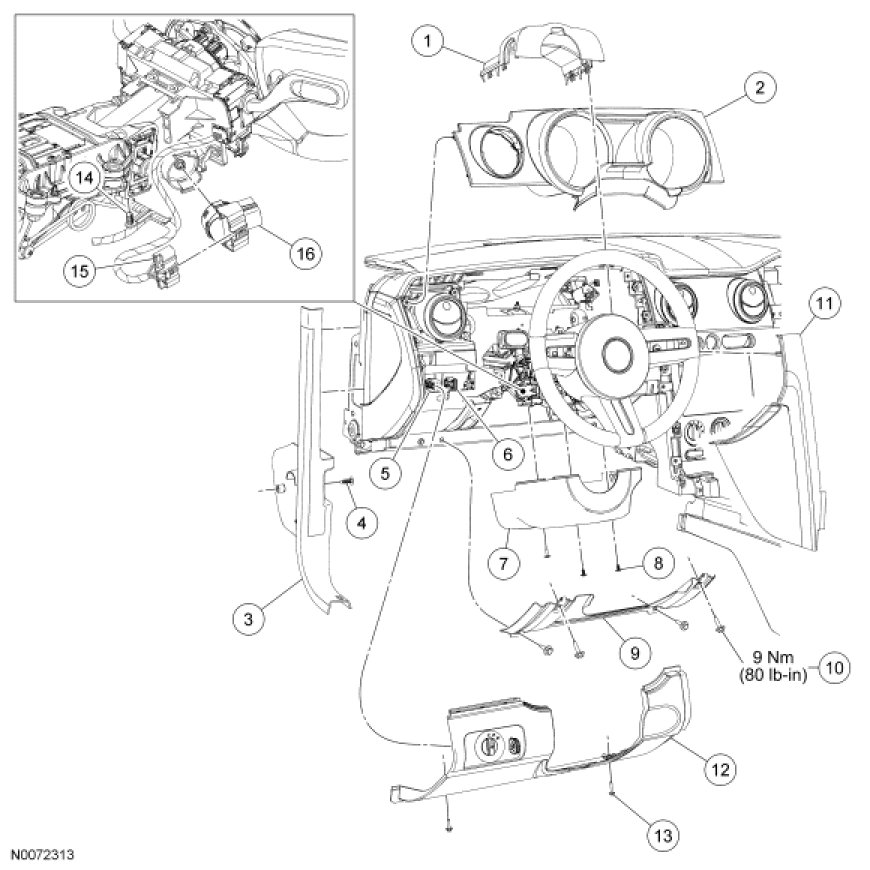 7. Remove the 4 bolts and the steering column opening cover reinforcement.