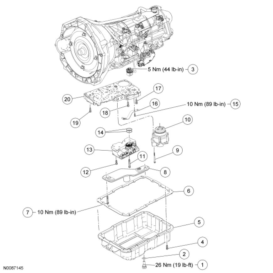 11. Install the transmission fluid pan and tighten the screws in a crisscross sequence.