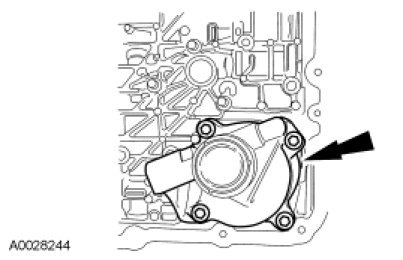 Remove the transmission control solenoid body screws and remove the transmission control solenoid body by lifting on the body and pushing the connector from the other side of the case.