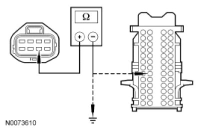 - Measure the resistance between RH rear quarter window motor C3119-6, circuit 2031 (GY/PK), harness side and SJB C2280D-20, circuit 2021 (WH/YE), harness side; and between RH rear quarter window motor C3119-6, circuit 2031 (GY/PK), harness side and ground.