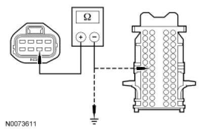 - Measure the resistance between LH rear quarter window motor C3118-6, circuit 2031 (GY/PK), harness side and SJB C2280D-19, circuit 2020 (GY/YE), harness side; and between LH rear quarter window motor C3118-6, circuit 2031 (GY/PK), harness side and ground.