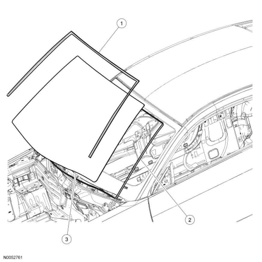 - For vehicles equipped with a glass roof, using a plastic windshield setting tool (or equivalent), carefully tuck the top of the windshield moulding beneath the leading edge of the front glass roof applique.
