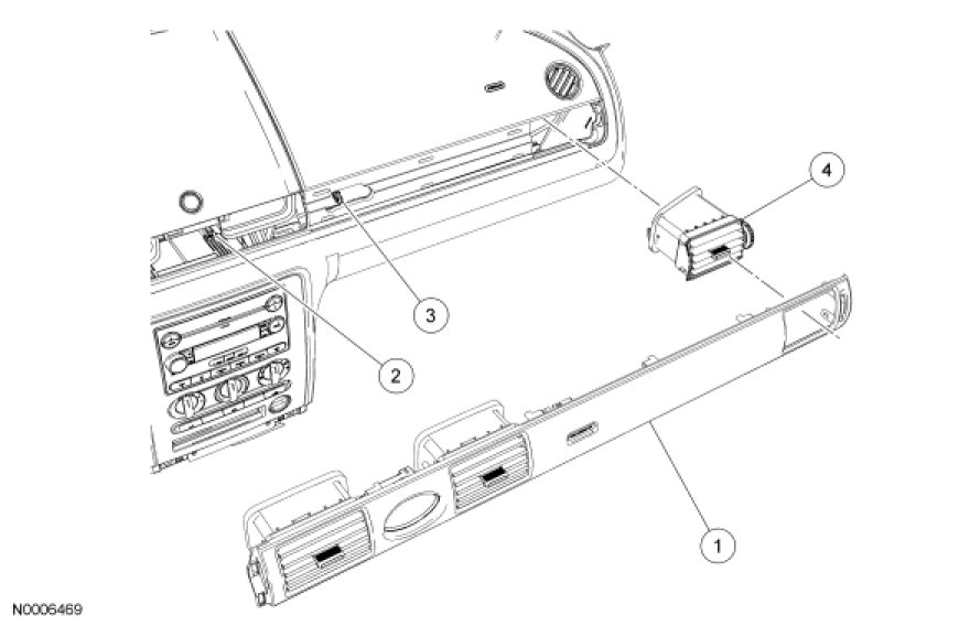 5. Release the 4 clips and remove the passenger side register.