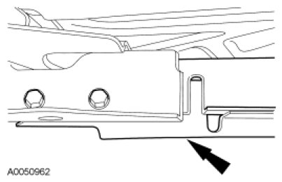 7. NOTICE: The transmission support crossmember is a press fit in the transmission support crossmember pocket. It may be necessary to pry the transmission support crossmember out of the transmission support crossmember pocket. Be careful not to damage the transmission support crossmember.