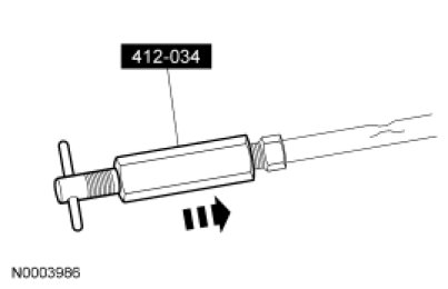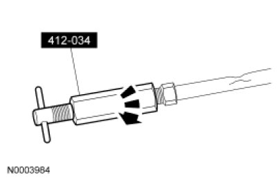 4. If the evaporator core orifice is intact, engage the Fixed Orifice Remover/Installer. Hold the T-handle stationary while rotating the tool body to remove the evaporator core orifice.
