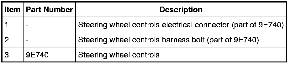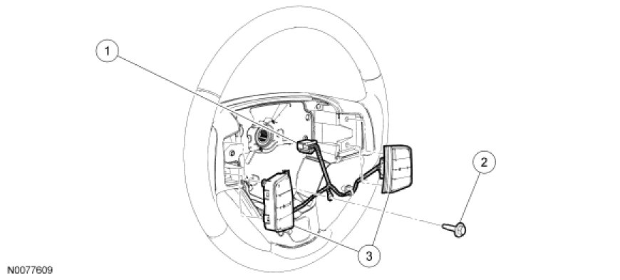 1. Remove the driver air bag module. For additional information, refer to Restraint Systems.