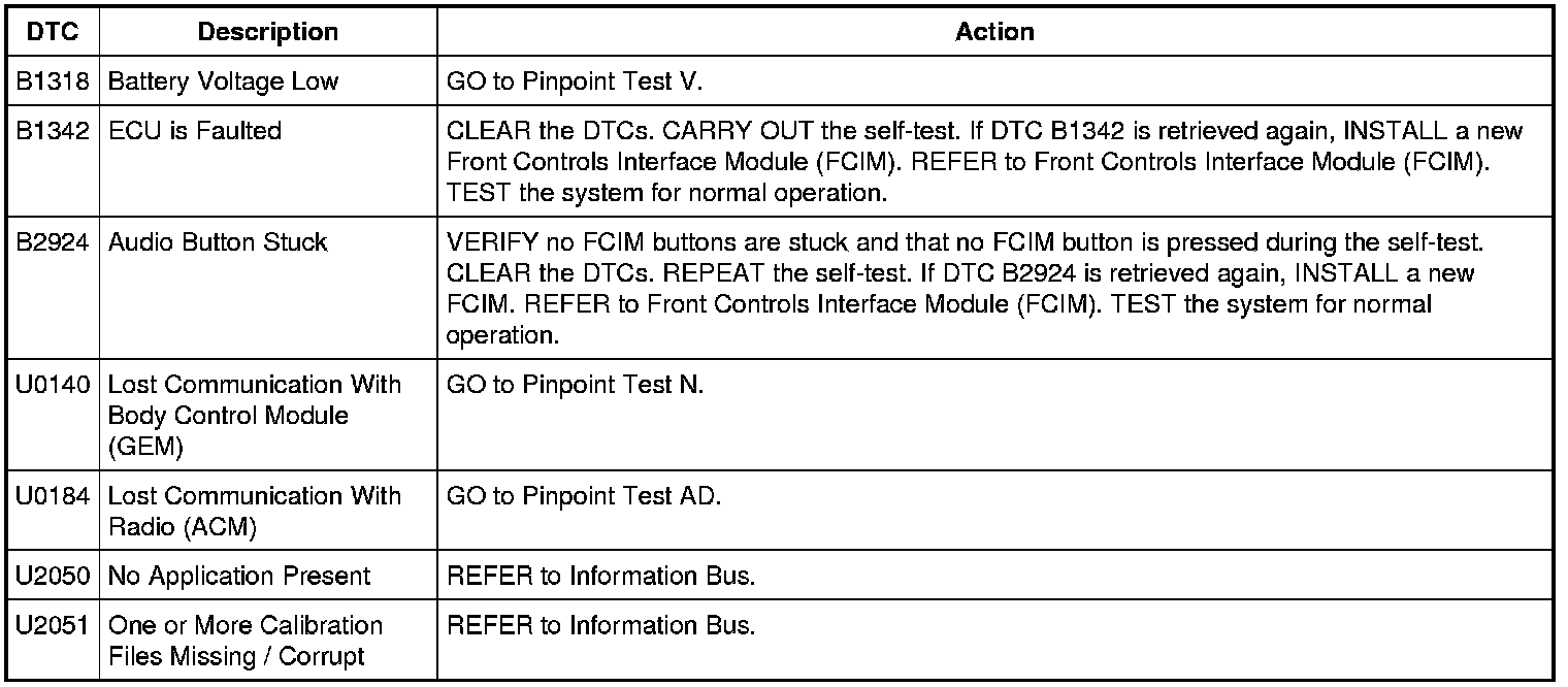 Front Controls Interface Module (FCIM) DTC Chart